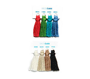 Nuestro hilo de algodón Deco Cablé está especialmente diseñado para el tejido a mano. Por sus características y gama de colores, este hilo es muy usado en la confección de prendas y accesorios para el hogar y climas medios como primavera y otoño: Chompas, gorros, chalinas, mantas, cojines, posa vasos, individuales son algunos ejemplos.