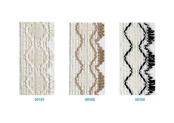 Cinta con efecto de pasamanería (greca) compuesta por algodón, acrílico y poliamida. Suave al tacto y al unir las piezas deseadas, se puede realizar una labor en corto tiempo. Se caracteriza por su novedosa y particular apariencia.