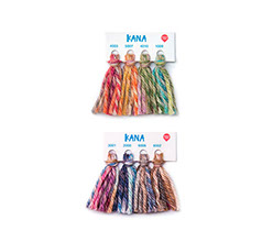 Lana compuesta por fibra poliéster y de algodón, torcida en cuatro cabos y teñida en colores matizados. La lana Kana tiene buena textura y su colorido debido a su teñido creativo, tiende a producir prendas con matices originales. Se caracteriza por su facilidad para tejer debido a su grosor y ser abrigadora.