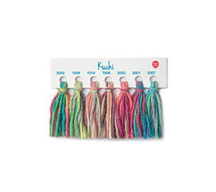 Lana compuesta por fibra acrílica y de algodón, torcida en cuatro cabos y teñida en colores matizados. La lana Kuchi tiene un acabado de suave textura y multicolor debido a su teñido creativo que produce prendas divertidas. Se caracteriza por su facilidad para tejer debido a su grosor y por ser abrigadora, sin ser demasiado pesada o gruesa, es importante mencionar su porcentaje de algodón, el cual es ideal para los niños.