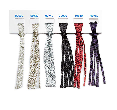 Cinta 100% poliamida. Durante el proceso de producción la cinta se caracteriza por ser brillante y sedosa. Su textura es delicada y suave al tacto.